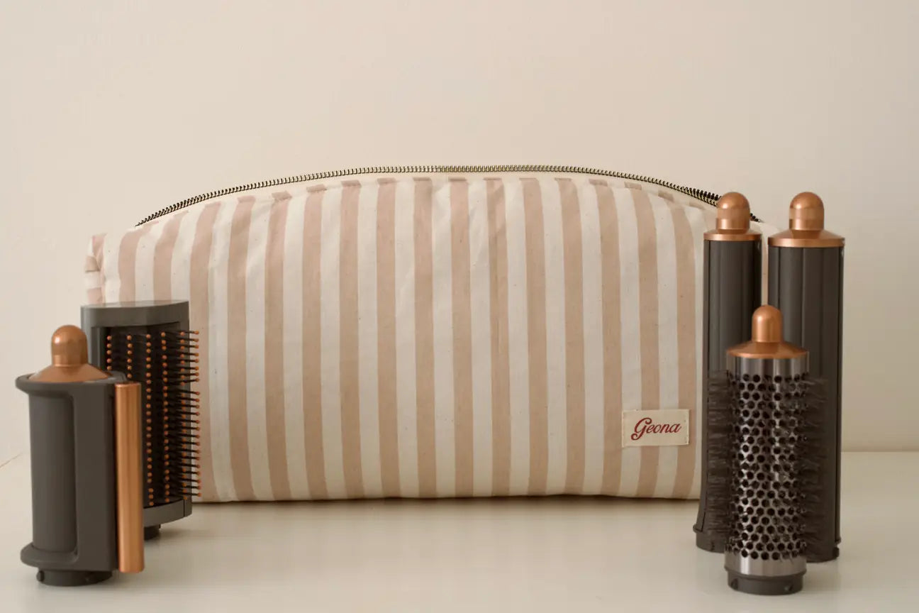 Dyson Airwrap/Airstait/Supersonic ve diğer tüm düzleştirici, maşa ve saç şekillendirici cihazlarınızı konforla saklayıp taşıyabilmeniz için çok şık ve işlevsel çantalar ürettik.